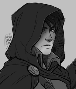 At the bottom is an open cave with fancy dinner setup on a long table. Each place at the table has a sketched portrait. Jason's portrait--it's surprising how baby-faced he looks when he's only a bit younger than he is now actually--is between a portrait of a hooded man and a portrait of a girl. There are a lot of portraits around the table, even one Cloud probably doesn't want to see.]